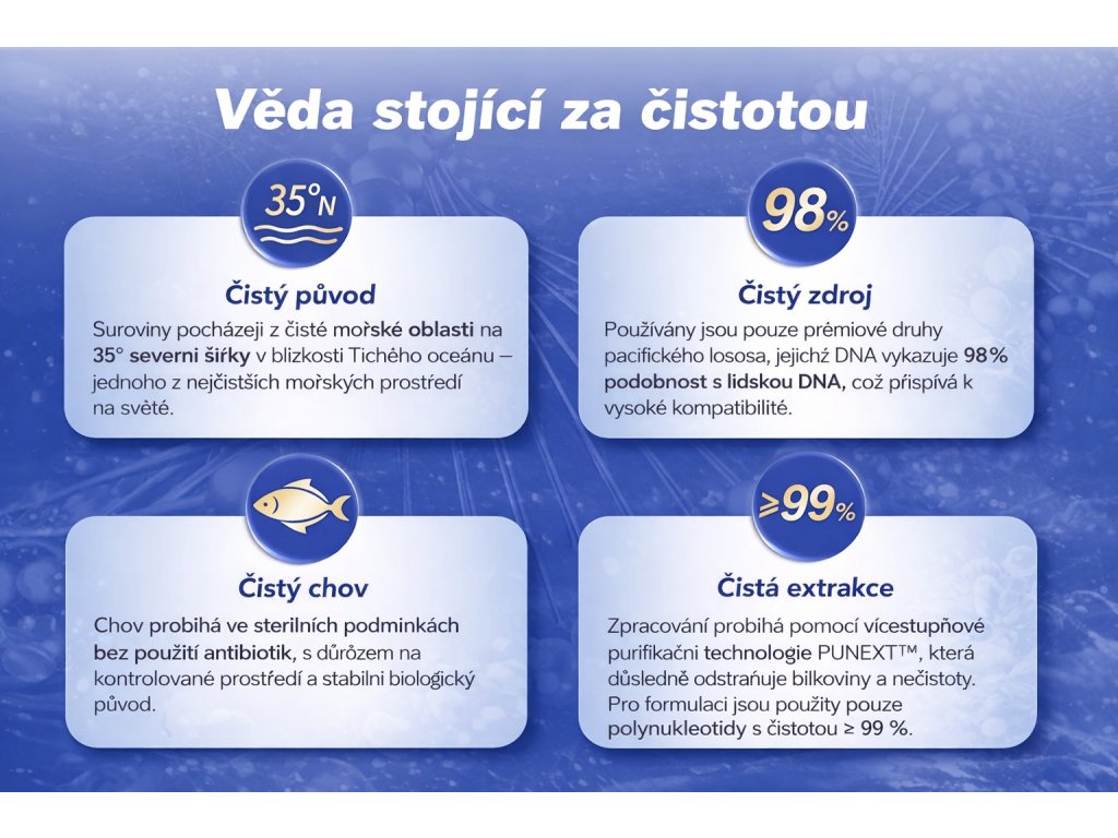 PNPure™ NeoSkin je kosmetický přípravek navržený pro moderní péči o pleť se zaměřením na hydrataci, regeneraci vzhledu a podporu elasticity pokožky. Jeho složení je založeno na vysoce čistých polynukleotidech, které jsou známé svou schopností podporovat komfort pleti a její celkově zdravější vzhled.
